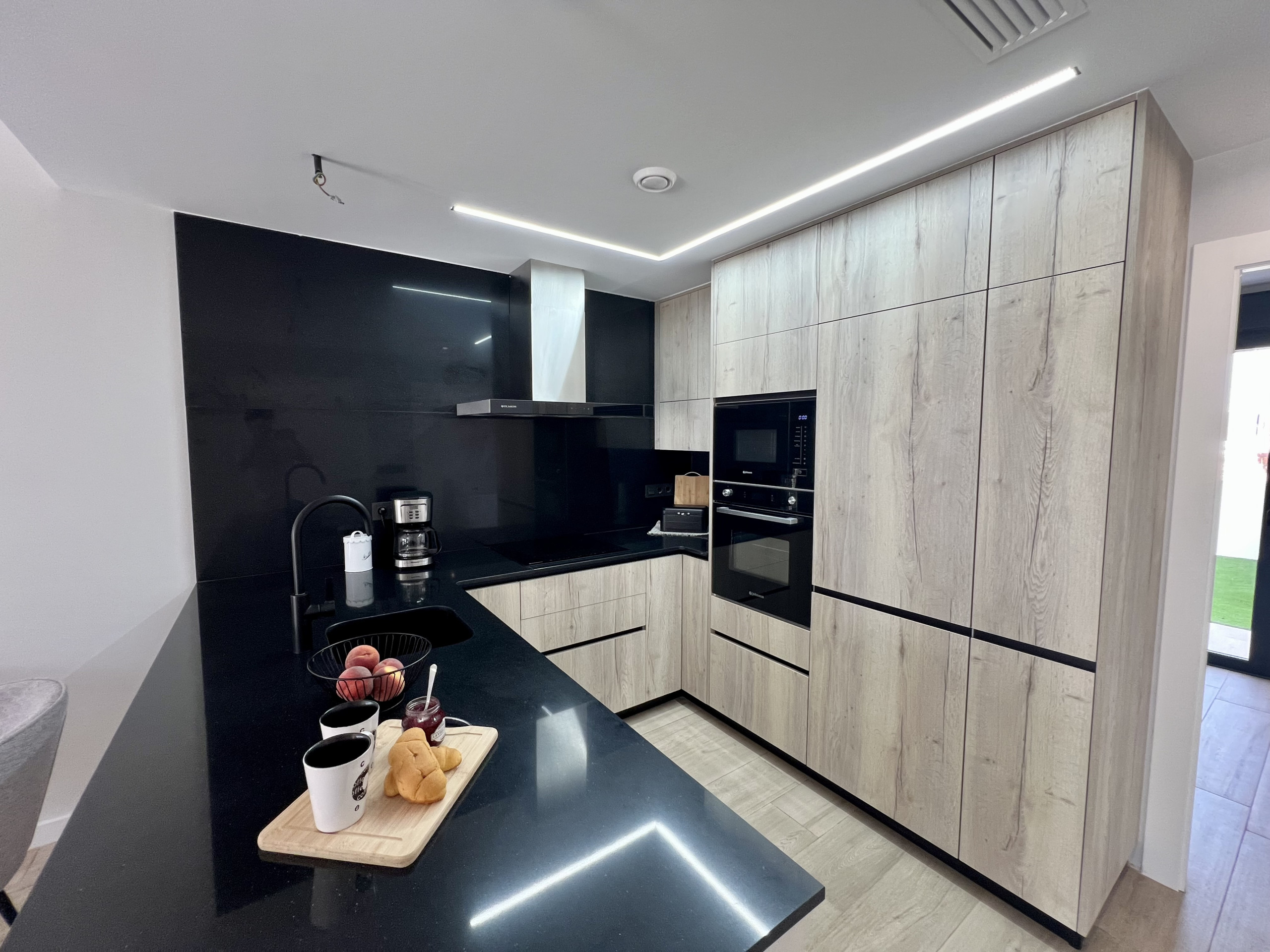 La cocina, de inducción, está equipada con nevera, microondas, horno, congelador, lavavajillas, vajilla/cubertería, utensilios/cocina, cafetera, tostadora y hervidor de agua.
