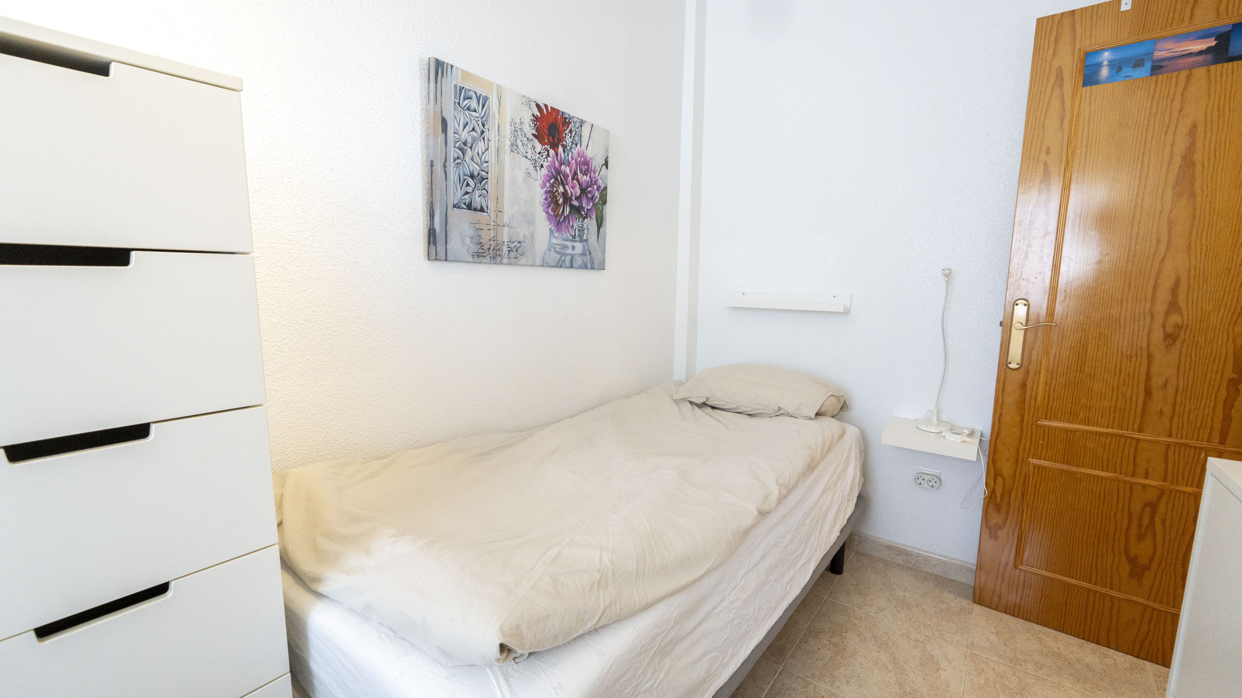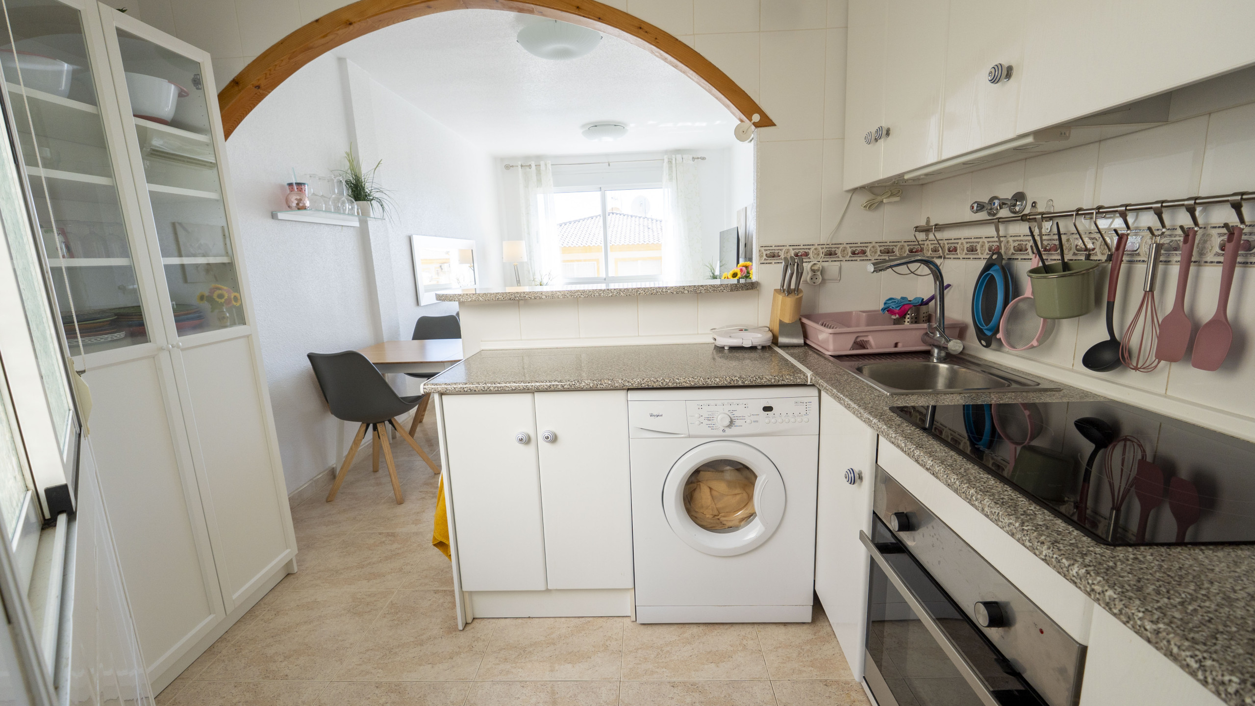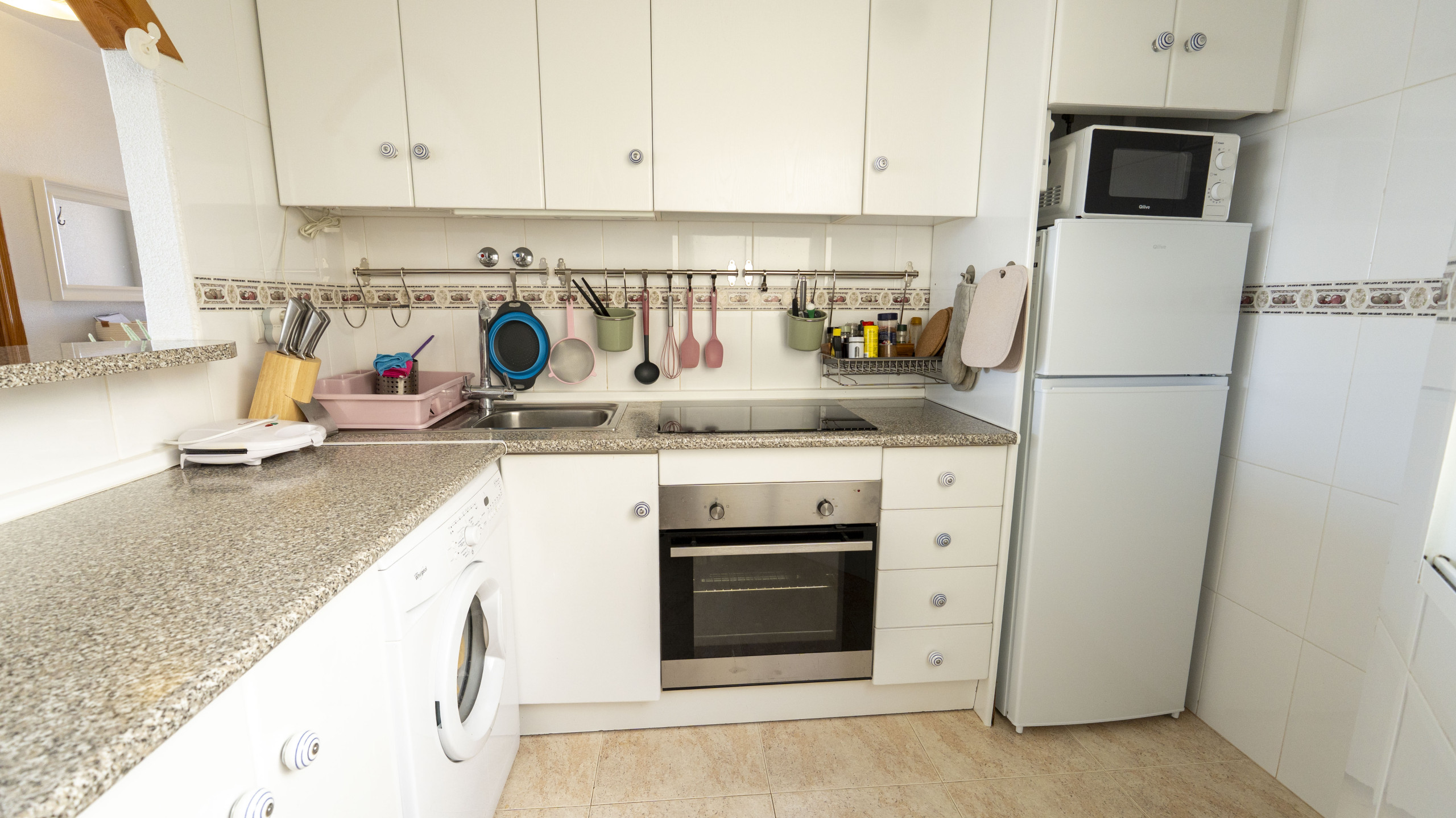 Apartamento luminoso y acogedor en la segunda planta, ubicado en una comunidad tranquila y cerrada, orientado al sureste con sol desde la mañana hasta el atardecer. El apartamento ofrece 2 dormitorios cómodos, 1 baño y una zona de cocina y salón de planta abierta. Aire acondicionado en todas las habitaciones y disponible para estancias de 11 días o más.