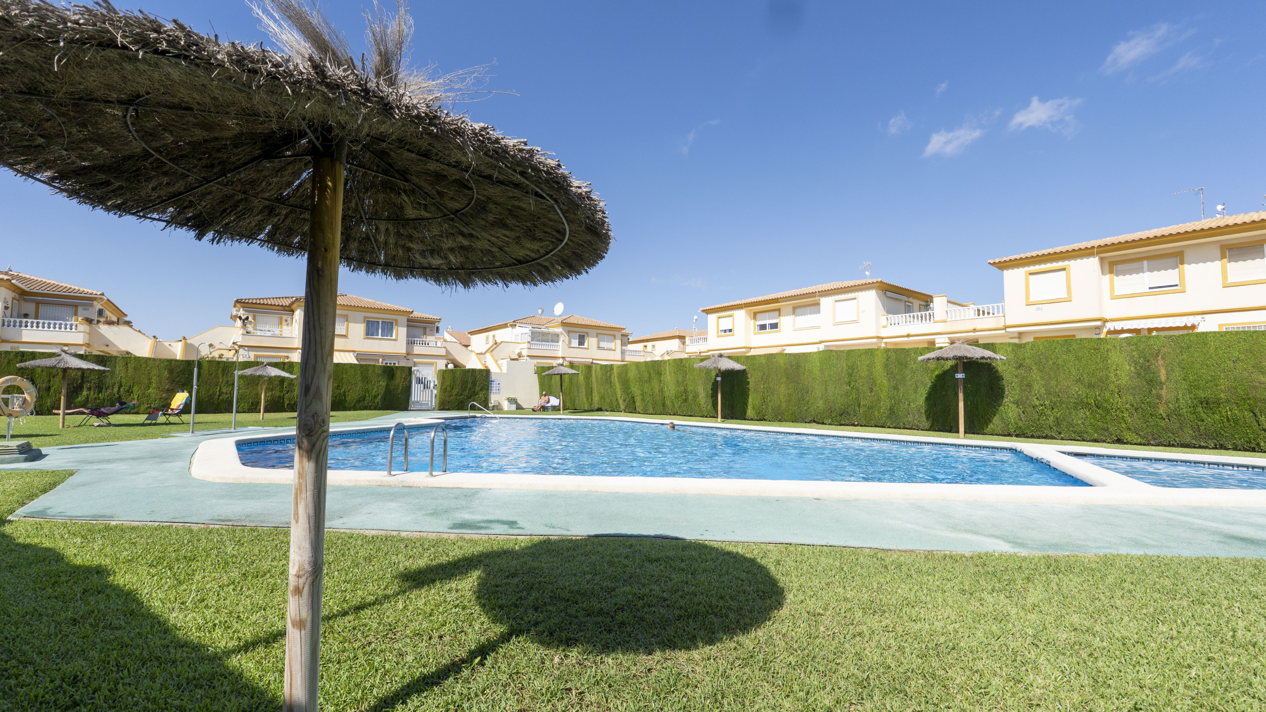 Relájese junto a la piscina comunitaria o camine hasta varias playas con Bandera Azul. Ubicado entre La Zenia, La Florida y La Flamenca, a poca distancia de La Zenia Boulevard, restaurantes, bares y entretenimiento. Mercado semanal cerca, instalaciones deportivas junto al complejo y 3 campos de golf a 10 minutos.