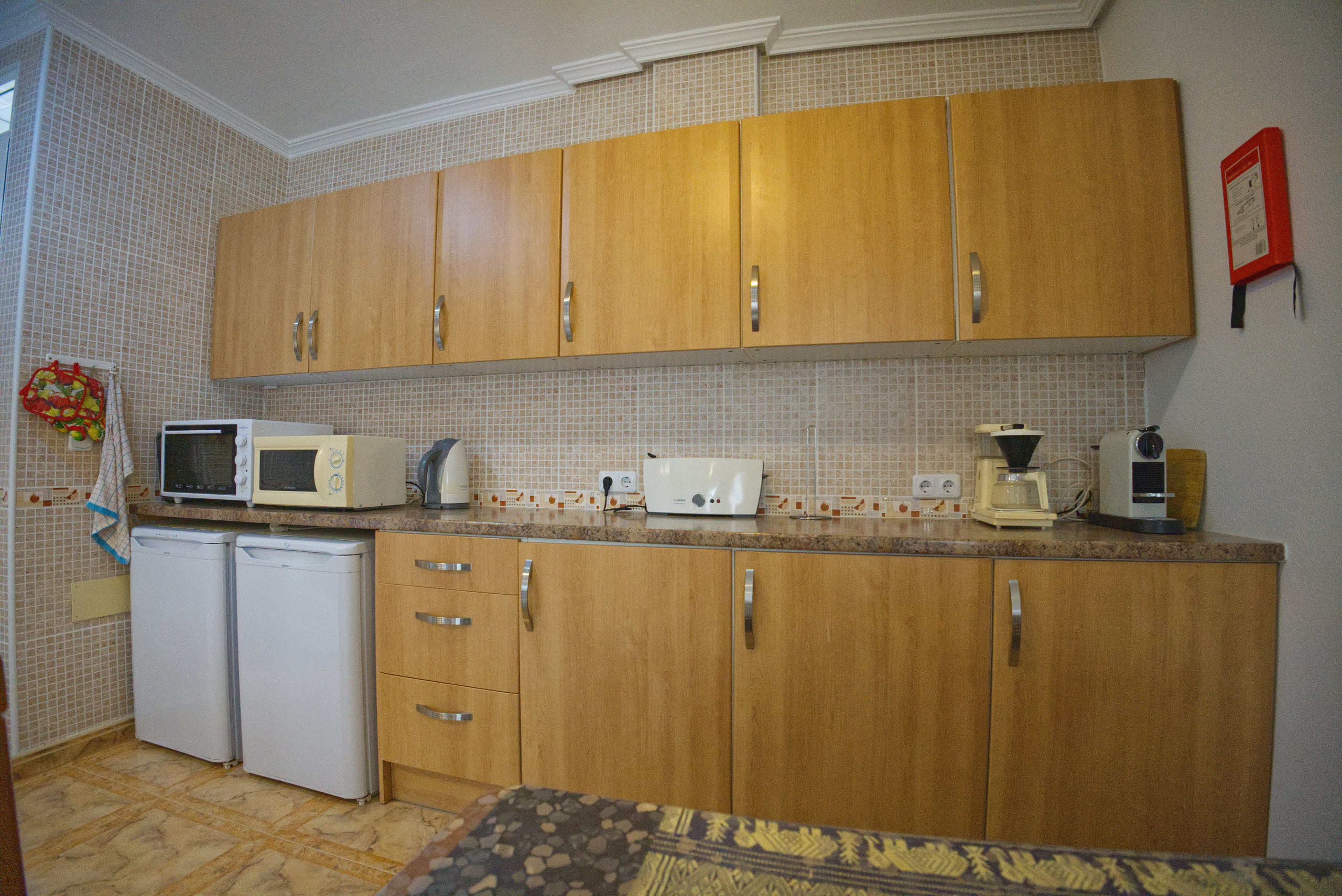 La cocina, eléctrica, está equipada con nevera, microondas, horno, congelador, vajilla/cubertería, utensilios/cocina, cafetera, tostadora y hervidor de agua.