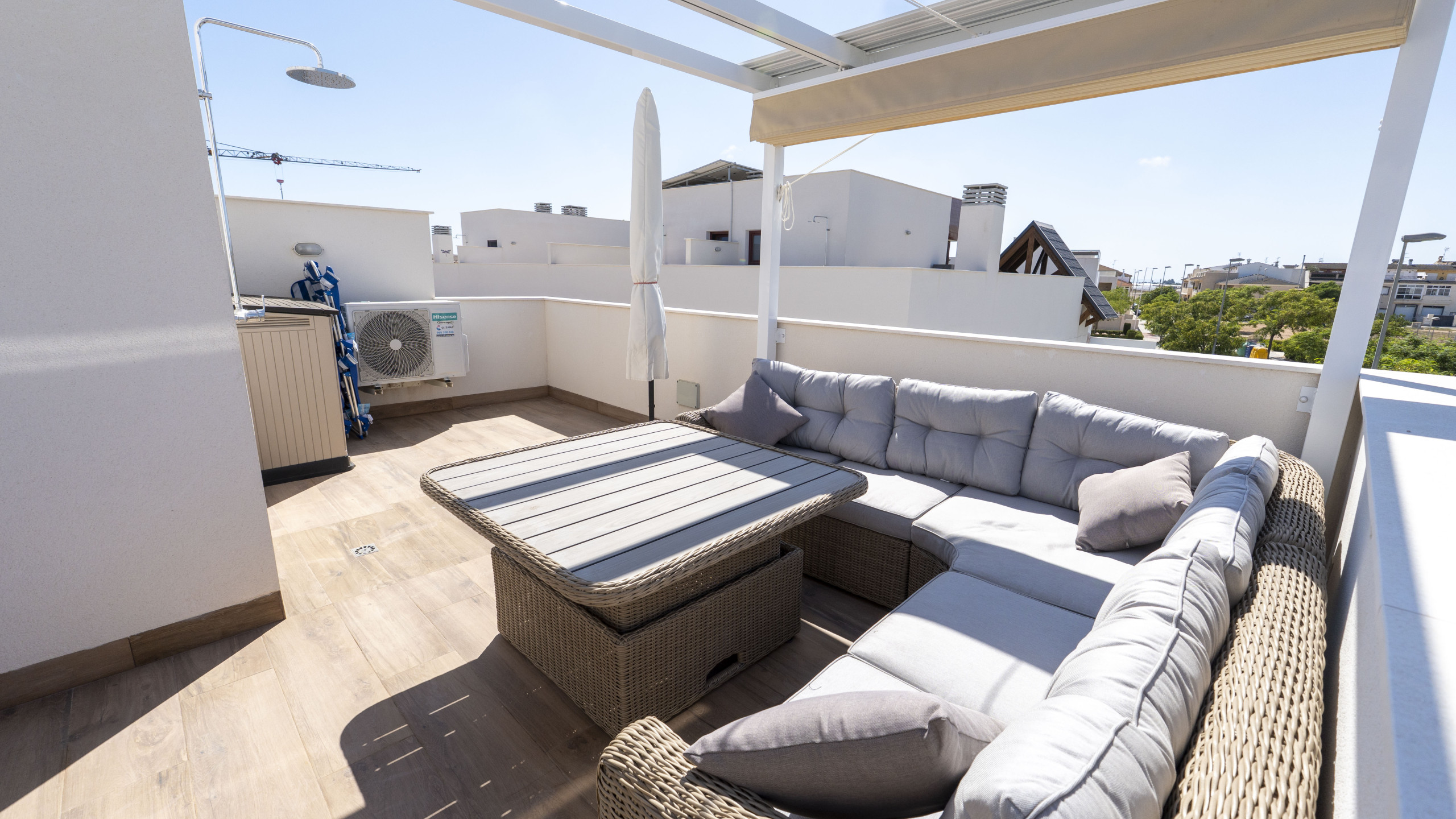 Se encuentra a 700 m de la ciudad, 4 km de la playa de arena, 5 km del campo de Golf, 46 km del aeropuerto y está ubicado en una zona tranquila y dentro de una urbanización.