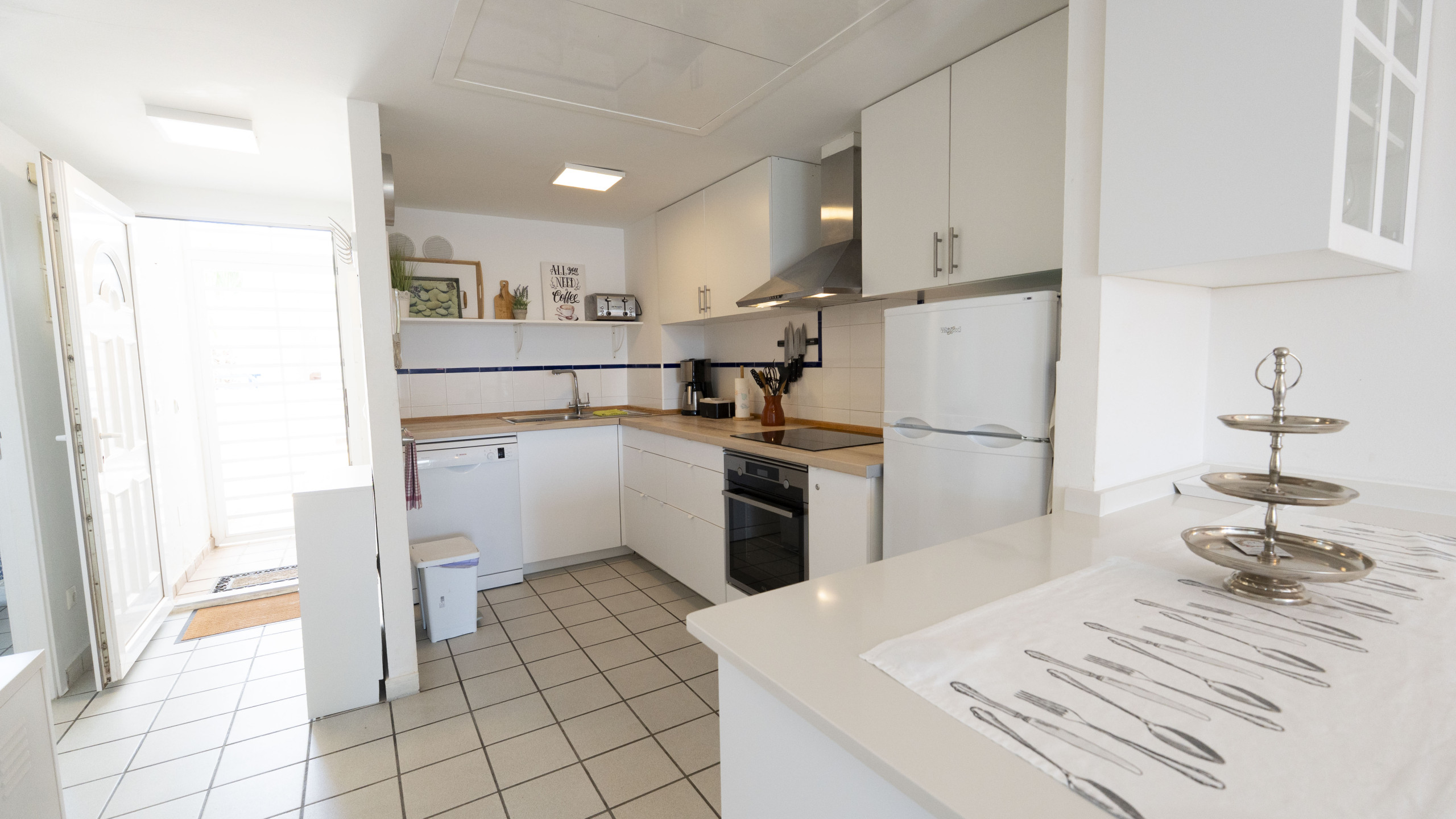 Det amerikanske kjøkkenet med induksjon er utstyrt med kjøleskap, mikrobølgeovn, ovn, fryseboks, vaskemaskin, oppvaskmaskin, servise/bestikk, kjøkkenutstyr/redskaper, kaffetraktere, brødrister og vannkoker.