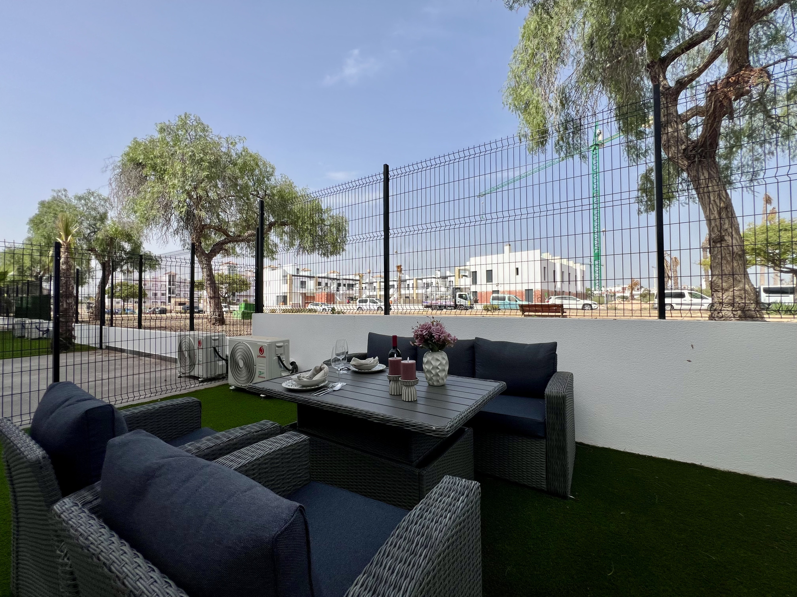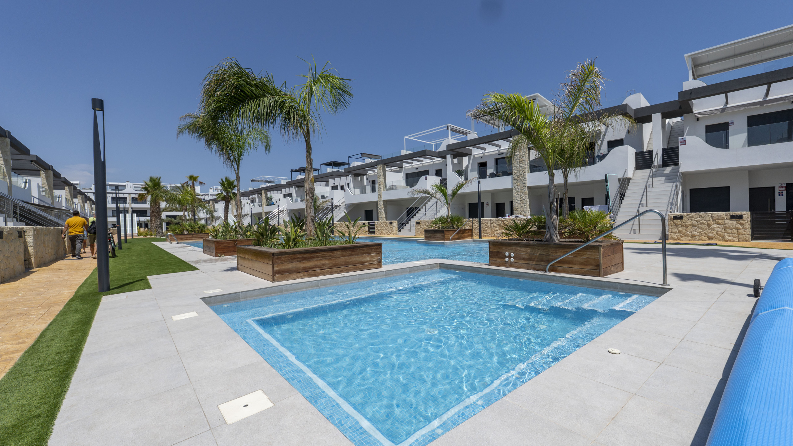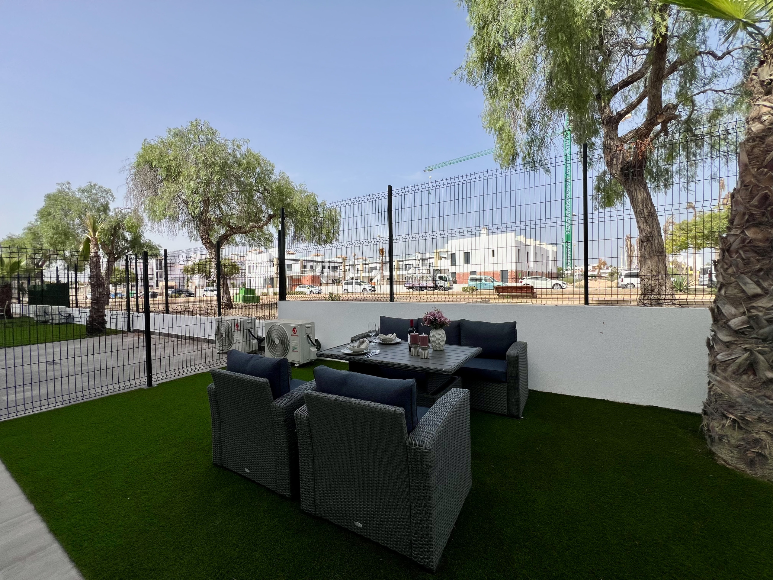 Boligen er utstyrt med følgende hage, hagemøblement, inngjerdet tomt, vaskemaskin, lekeplass, treningsstudio, spa, varmepumpe, air condition, svømmebasseng felles barnebasseng, 1 TV.
