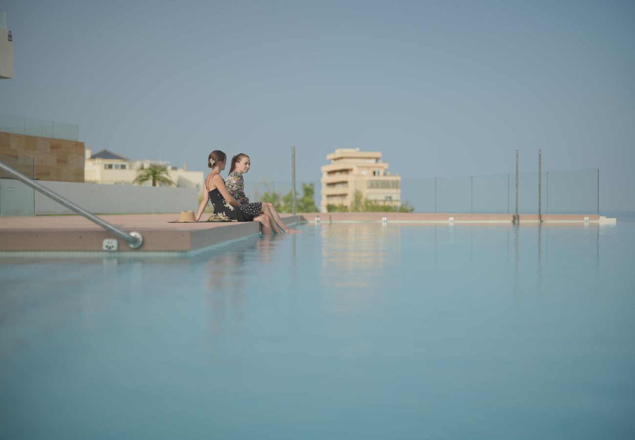 Boligen er utstyrt med følgende hage, terrasse, internett (wifi), balkong, air condition i hele huset, svømmebasseng felles , oppvarmet svømmebasseng felles , innendørs parkering, 1 TV, satellitt (Språk: Spansk).