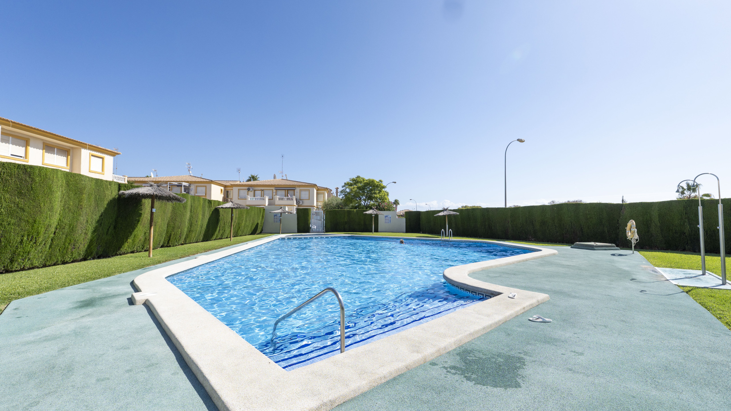 Relax by the community swimming pool or walk to several Blue Flag beaches. Located between La Zenia, La Florida, and La Flamenca, within walking distance of La Zenia Boulevard, restaurants, bars, and entertainment. Weekly market nearby, sports facilities next to the complex, and 3 golf courses within 10 minutes.
